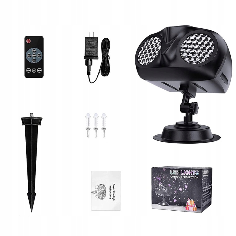 Проектор снежинок поставляется с опорой для травы и внутренним основанием, которое можно прикрутить к стене или лужайке или разместить непосредственно на твердой поверхности. Длинный кол можно вбить в землю в саду или во дворе. Круглое основание можно разместить на твердой поверхности или закрепить на стене с помощью шурупов. Регулируемая на 270° головка проектора позволяет легко направлять свет как в помещении, так и на улице.