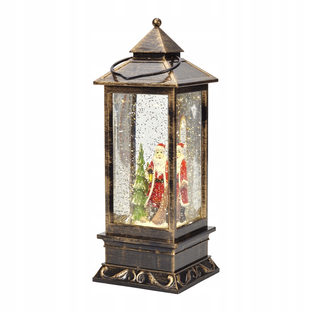 Внутри фонаря — величественный Дед Мороз, распространяющий праздничное настроение среди елок и клубящегося снега. Снег — это серебряный блеск, который кружится в воде благодаря вентилятору внизу. Так что вам не придется постоянно поворачивать фонарь, чтобы на Санту сыпался снег – это полностью автоматически.