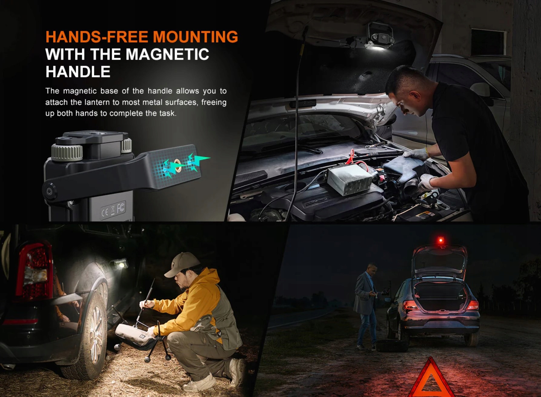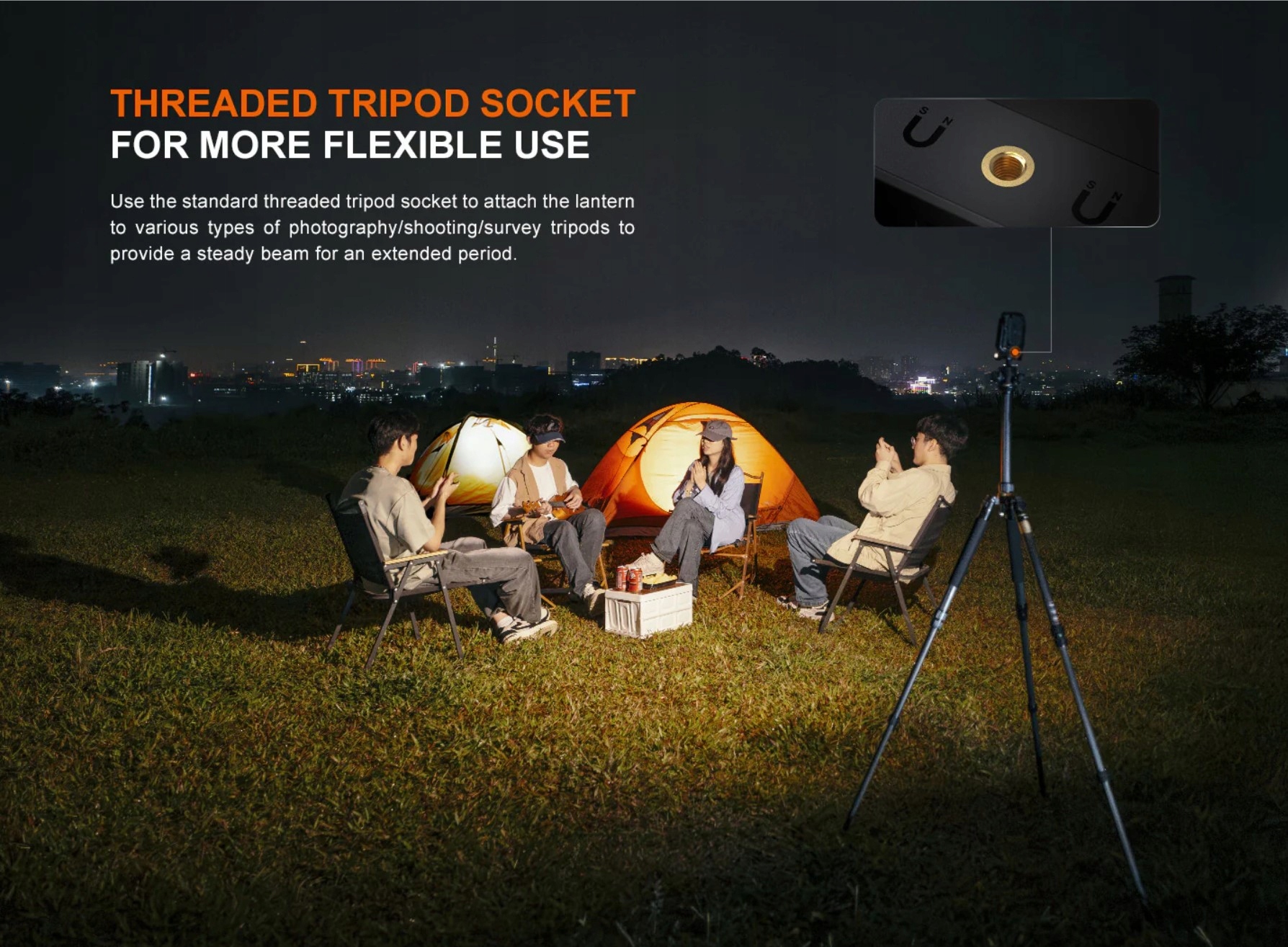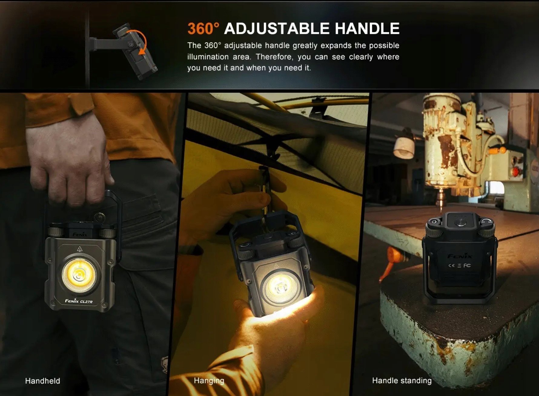 Fenix Cl27R Campsite предлагает несколько вариантов монтажа: магнитная ручка b> позволяет использовать без использования рук и может вращать 360 градусов, обеспечивая идеальную настройку света. Устройство также может быть прикреплено к штативу . Он также выдержит падение с высоты до 1 метра . Это делает это с помощью инструмента, который полезен во время работы на открытом воздухе, кемпинг, фотосессии и т. Д. Области. При необходимости заряжать батарею,