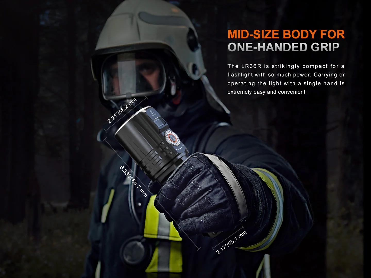 Fenix LR36R использует двенадцать диодов Luminus 25 и один CT1-Mini с жизнью 50000 часов каждый. фонарик использует белую волну лазера для освещения отдаленных объектов, в то время как на коротком расстоянии устройство освещает окружающую среду широким отражателем. Эти функции делают Fenix LR36R отличным фонариком для аварийных служб, работающих в экстремальных условиях.