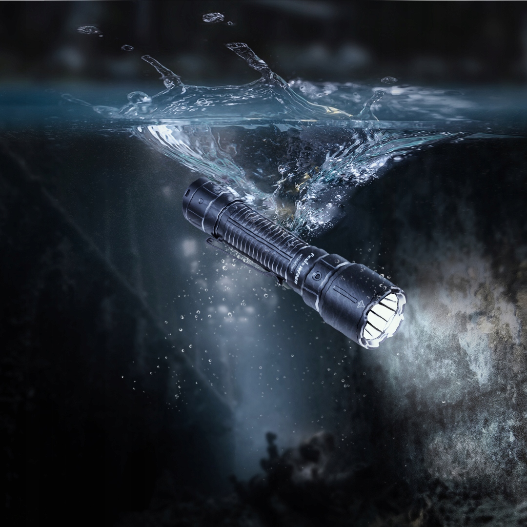 В фонаре используется несколько систем безопасности, среди которых: Высокий класс защиты IP68 делает фонарь устойчивым к полному погружению в воду (30 минут на глубину до 2 м), пыли, грязи и падениям.