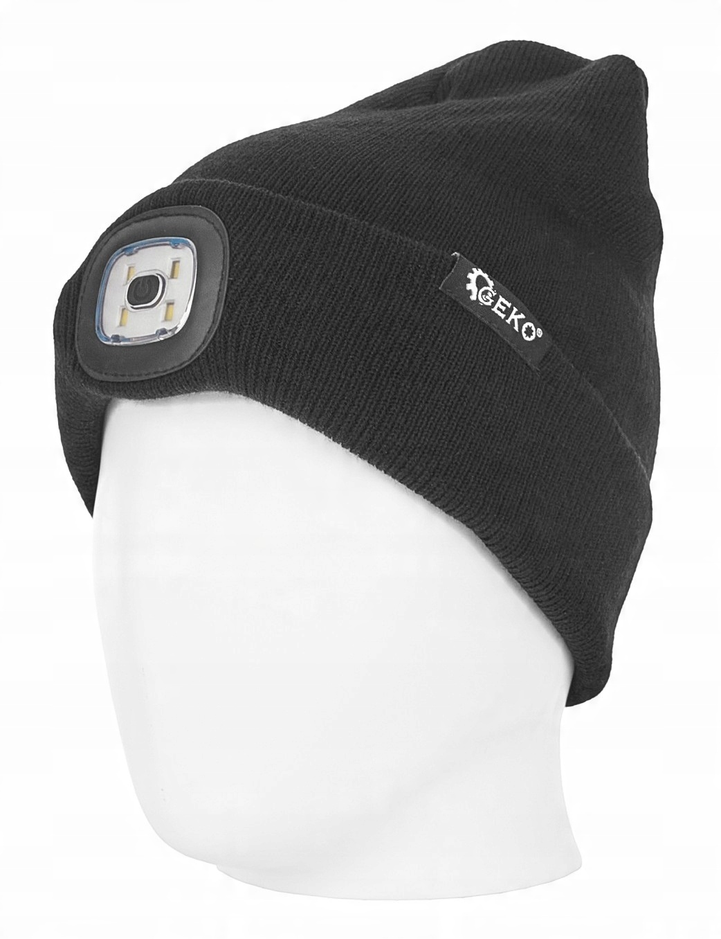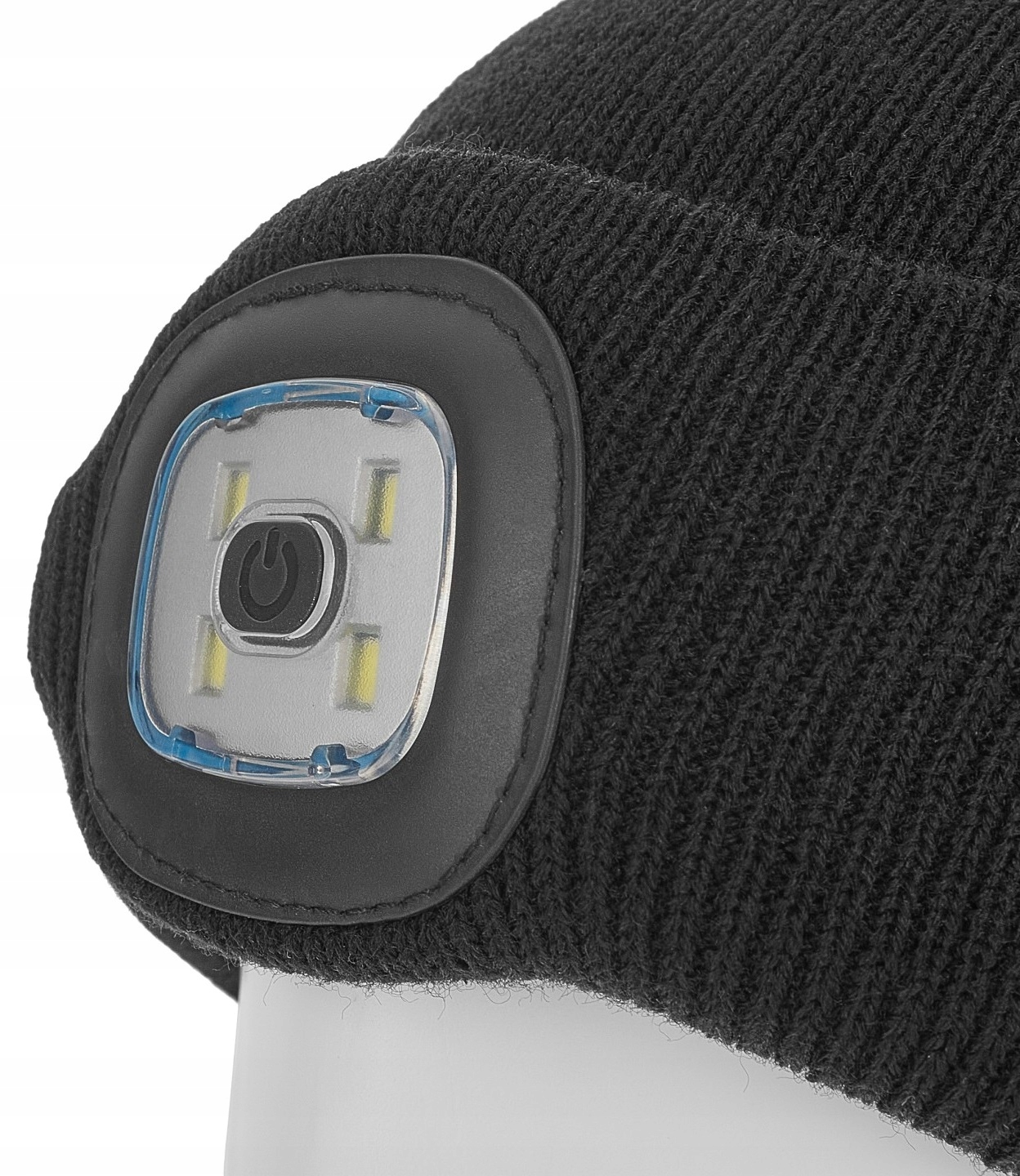 Вязаная зимняя шапка со съемной аккумуляторной светодиодной налобной частью.