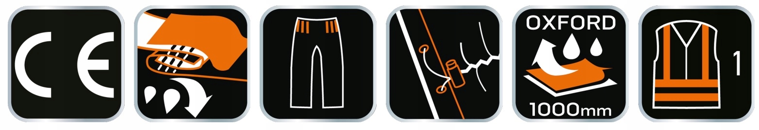 Изготовлены из прочного, водонепроницаемого флуоресцентного материала и светоотражающих элементов, обеспечивающих видимость, соответствующую классу 1, в соответствии с требованиями PN-EN ISO 20471:2013. стандарт.