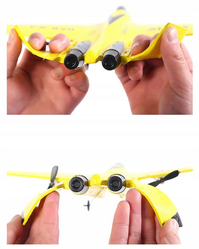 Пропеллеры спрятаны в крыльях, поэтому их не так легко сломать, как в других моделях. Самолет, оснащенный светодиодами, виден с большого расстояния