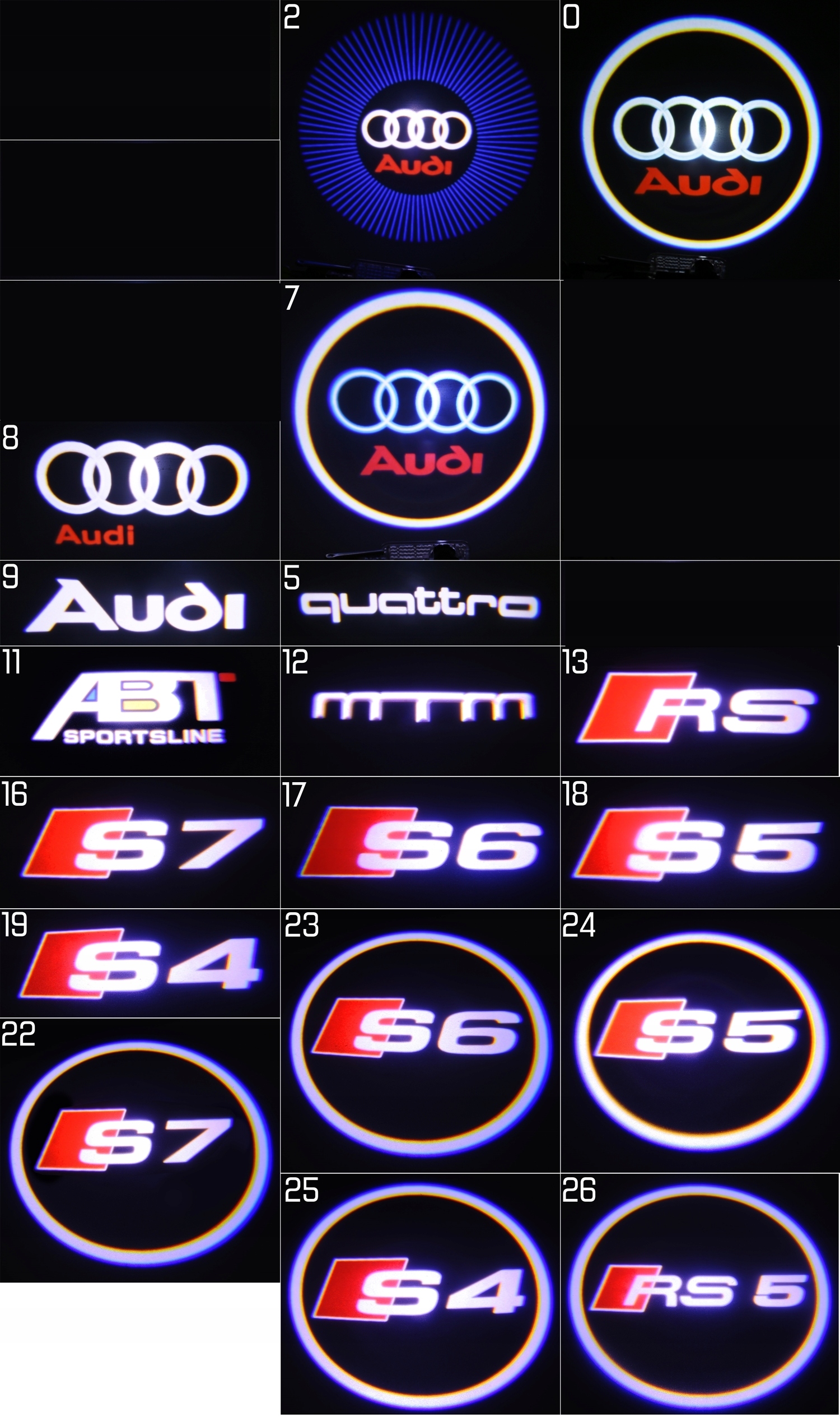Пара специальных светодиодных проекторов логотипов, подходящих для AUDI