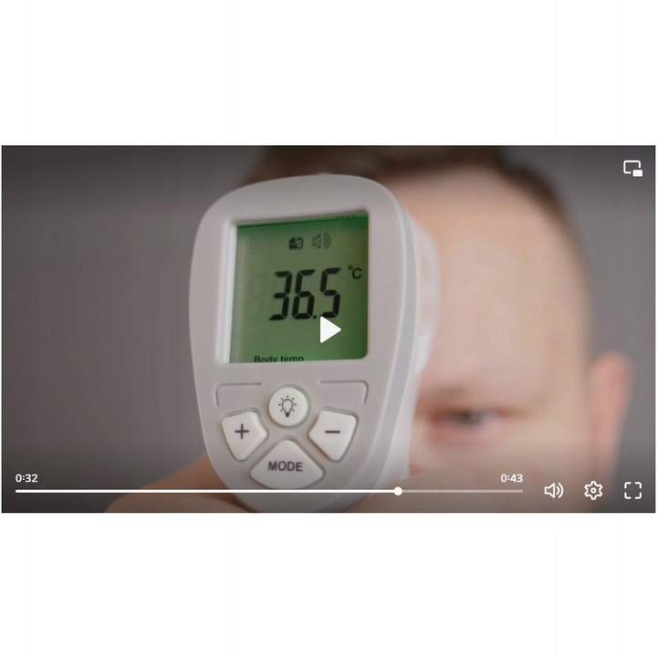- Продолжительный ЖК -дисплей - отличный как медицинский термометр. Устройство имеет зеленый, красный и оранжевый экран. На дисплее также отображается информация об увеличении или слишком низкой температуре: HI - высокая температура, LO - слишком низкая температура. Чтение температуры благодаря большому количеству разборчиво и происходит в диапазоне 35 - 43 градуса, с измерением тела и 0 - 100 градусов с измерением поверхности.