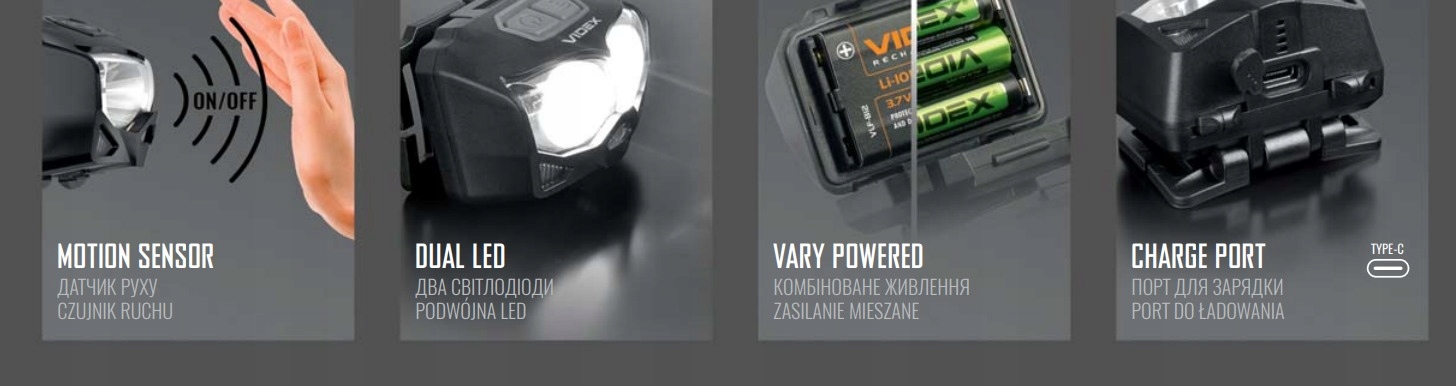 ✔ два мощных светодиода для основного освещения, красный светодиод и датчик движения для бесконтактного управления