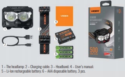 ✔ Литий-ионный аккумулятор VLF-B12 или 3 батарейки типа ААА