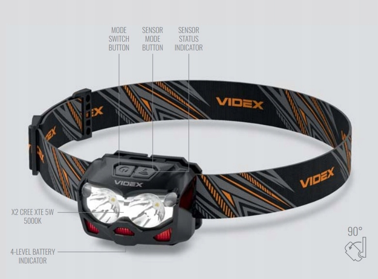 Світлодіодний налобний датчик руху 2x5W 500lm IP65
