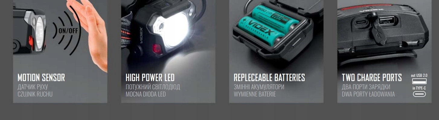 Світлодіодний налобний датчик руху Power Bank IP65
