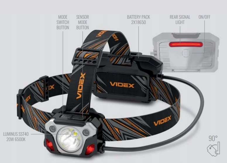 Светодиодный налобный фонарь, датчик движения, внешний аккумулятор IP65