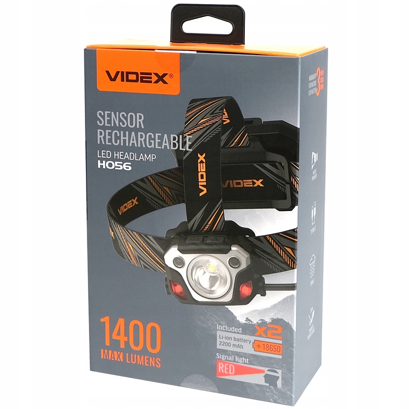 Светодиодная фара. Максимальная яркость 1400Лм. Регулируемый угол крепления позволяет выбрать удобный угол освещения. Встроенный датчик движения для удобной активации. Оснащен задним сигнальным фонарем для безопасного передвижения. Налобный ремень для фонаря изготовлен из износостойкого материала с мягкой текстурой. Использовался диод Luminus SST40 мощностью 20 Вт. Сенсорная кнопка позволяет включать фонарик и управлять его режимами с помощью жестов руки. 5 режимов работы: HIGH (режим максимального белого света) - интенсивность света 1400Лм, LOW (режим белого света с минимальной мощностью) - интенсивность света 170Лм, STROBE (Стробоскоп) - быстро воспроизводит повторяющиеся импульсы яркого белого света, RED ON - максимальная мощность красный свет, RED FLASH – красный свет мерцает. USB-порт функционирует как «POWER BANK» и используется для зарядки любых мобильных устройств. Уровень заряда фонаря. Возможность падения с высоты 1 м. Имеет полную защиту от пыли, сильного дождя и брызг. Стандарт защиты - IP65.
