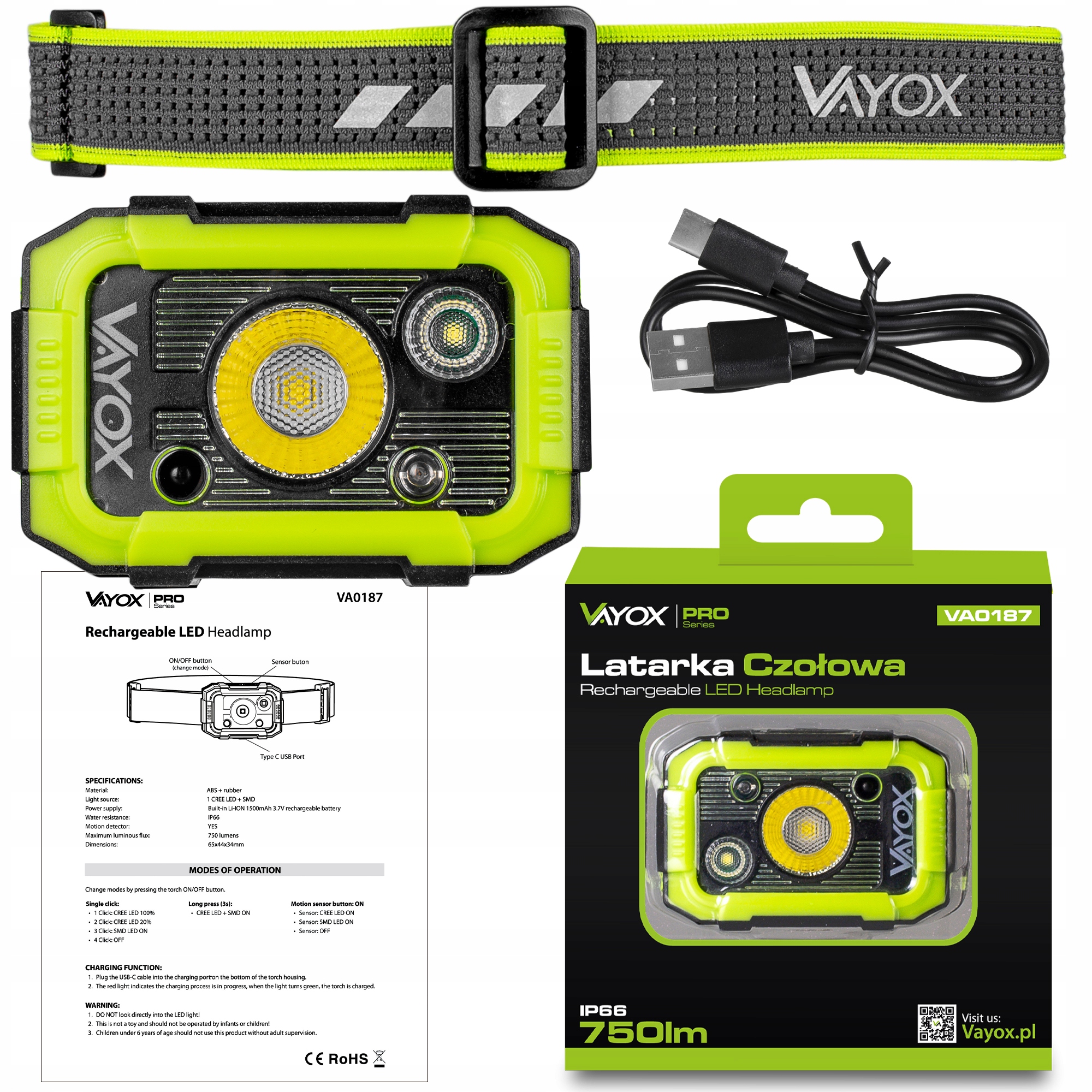 Світлодіодний налобний ліхтар VAYOX HAMMER 750 лм, перезаряджуваний USB-C, Pro
