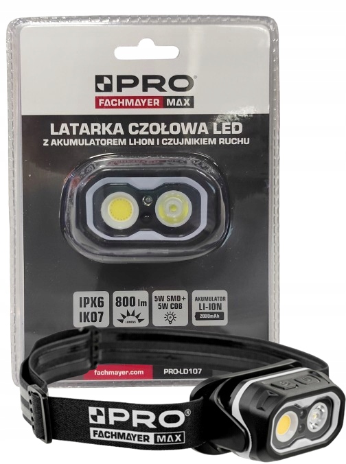 Світлодіодний налобний ліхтар з літій-іонним акумулятором і датчиком руху IPX6 800 лм