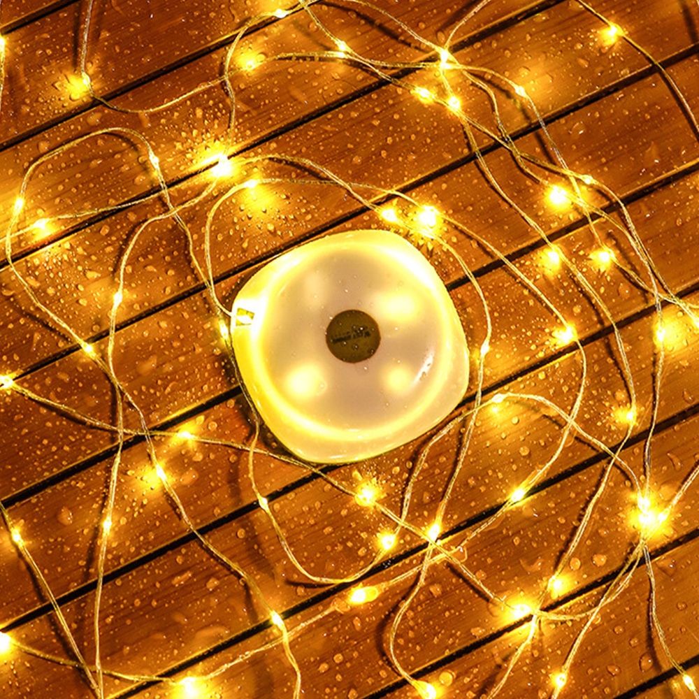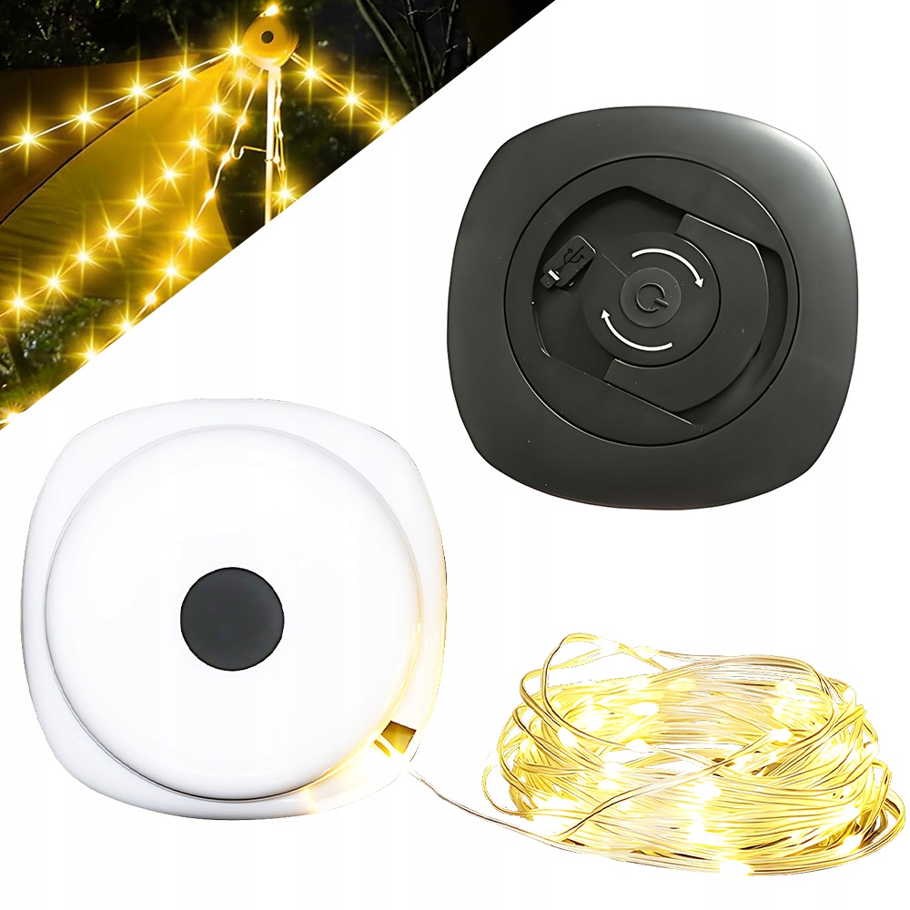 объединяет эти две функции и может использоваться в качестве маяка, а также может создать романтическую атмосферу. Он компактный и портативный, а водонепроницаемая светодиодная строка снаружи составляет 10 м . Используйте его, чтобы осветить свой кемпинг и украсить ночное небо.