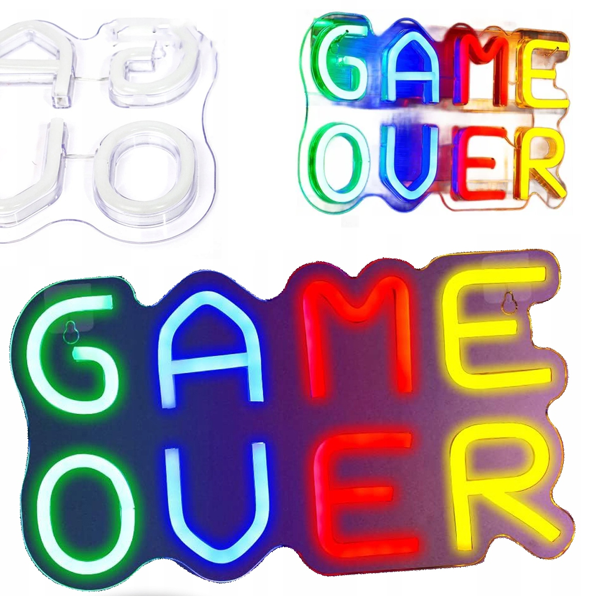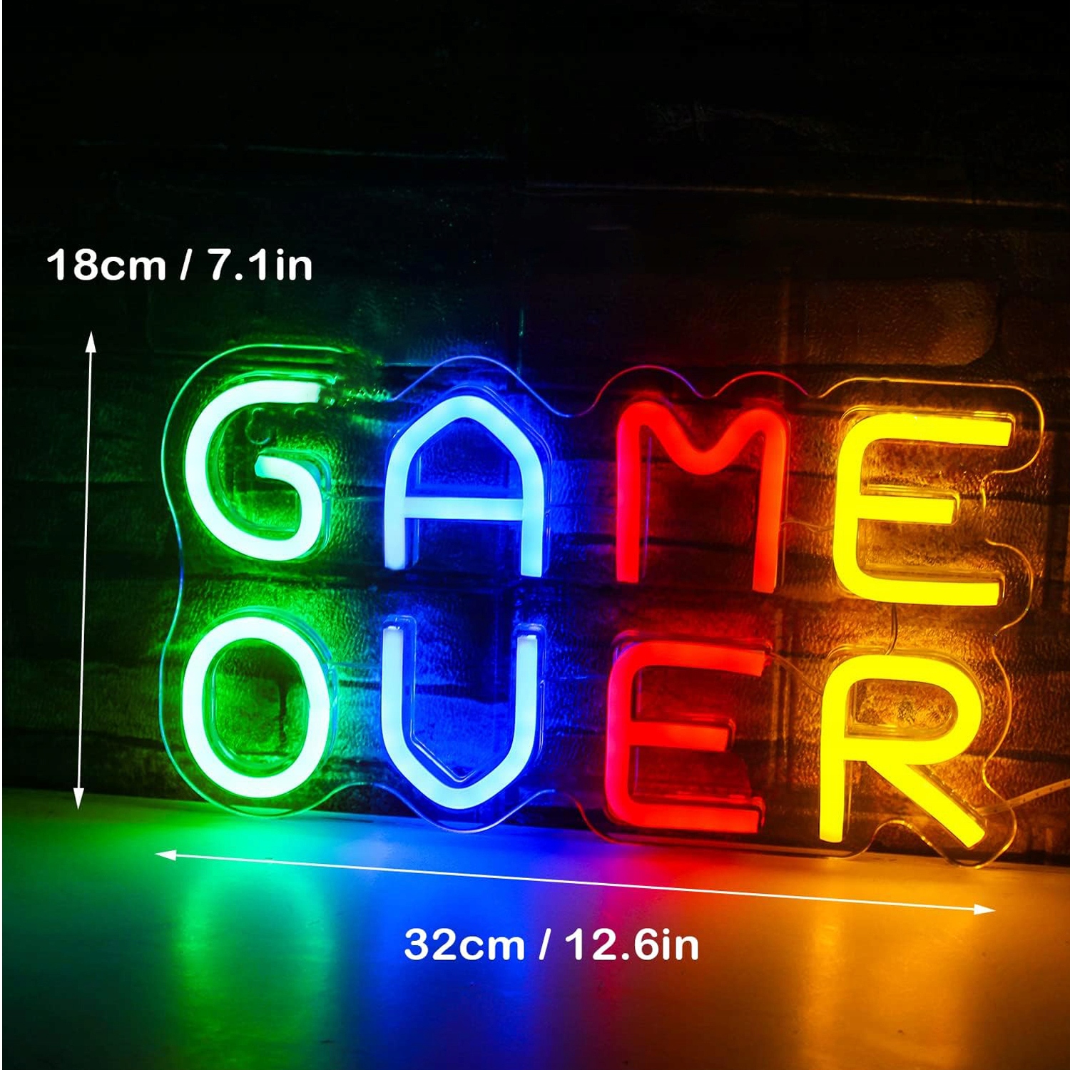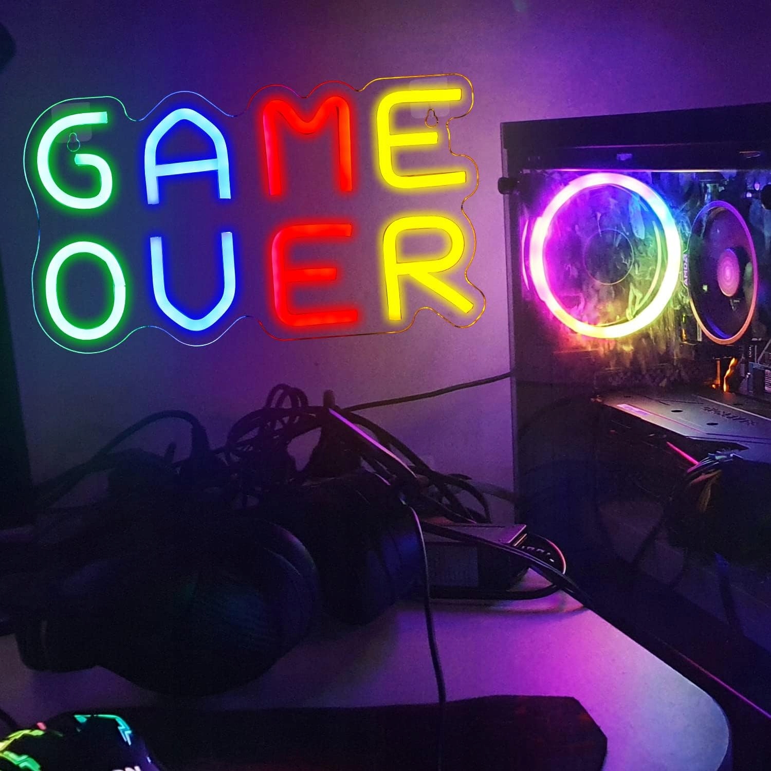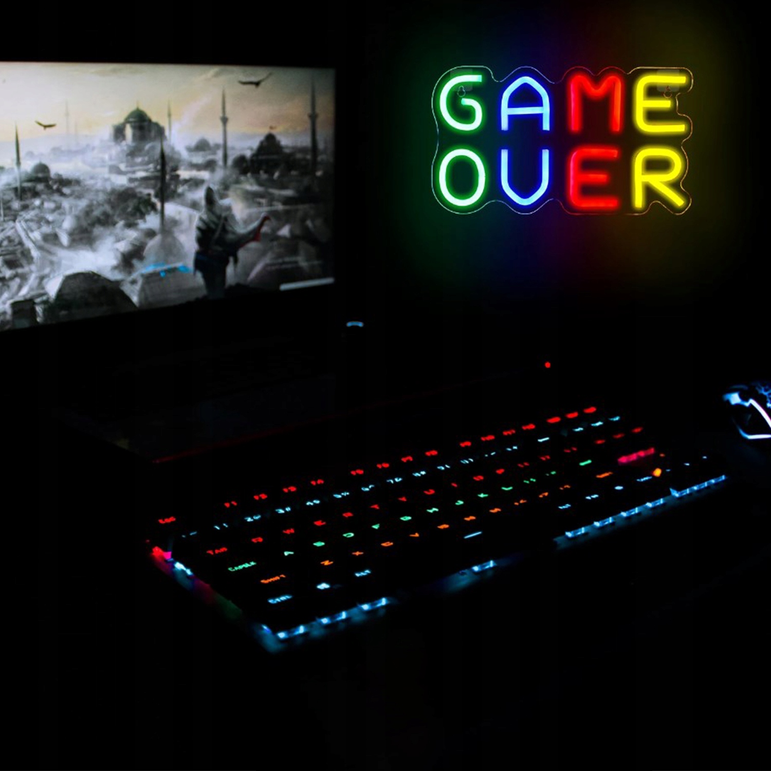 Светодиодная неоновая надпись GAME OVER, многоцветная, для спальни