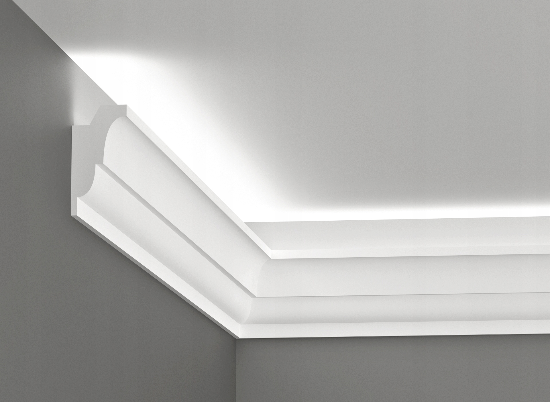 Карниз для настенного освещения – популярное изделие, которое крепится на стену на определенном расстоянии от потолка. Важным преимуществом этой ленты является возможность установки светодиодного освещения. В нашем предложении представлен широкий выбор моделей. Мы производим как классические, так и современные модели. Благодаря этому такие элементы можно использовать в любом интерьере. Изделие подготовлено к покраске выбранной внутренней краской, не содержащей растворителей.