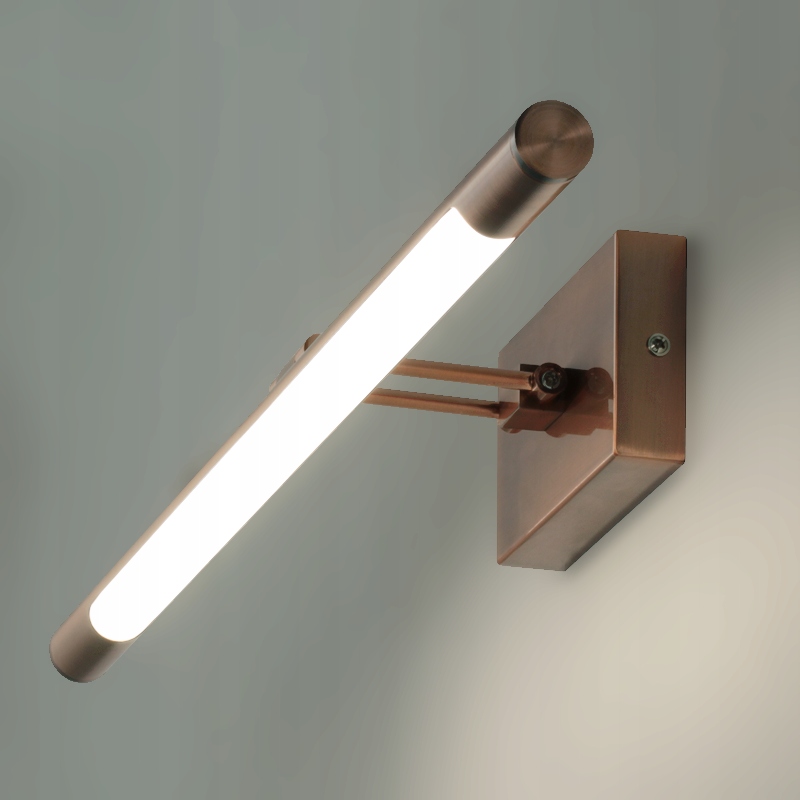 Благодаря универсальному дизайну лампу можно можно монтировать как над зеркалом в ванной, так и над картиной.