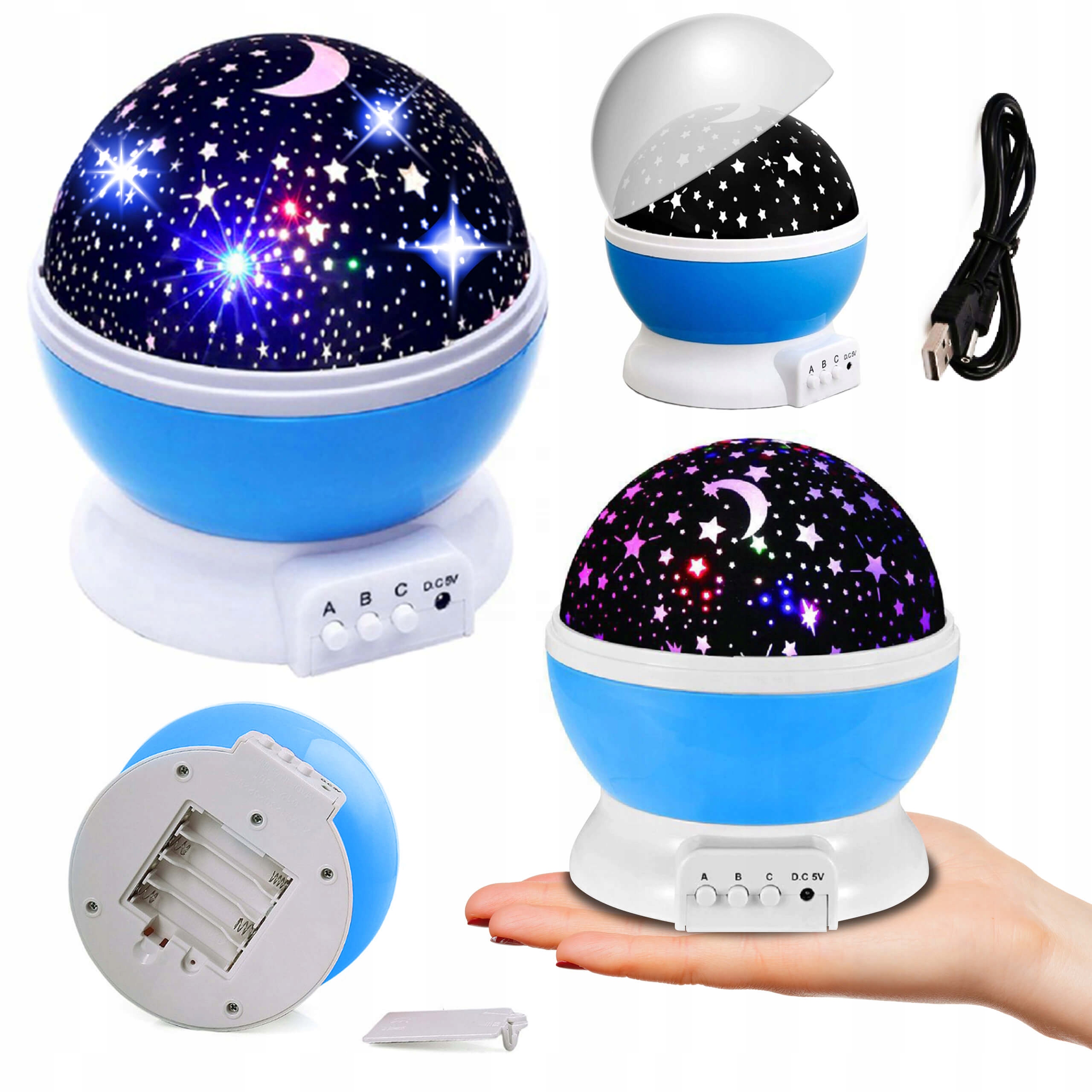 - вращается на 360 градусов. проектор - при вращении создает на стенах и потолке эффект звездного неба в ночное время