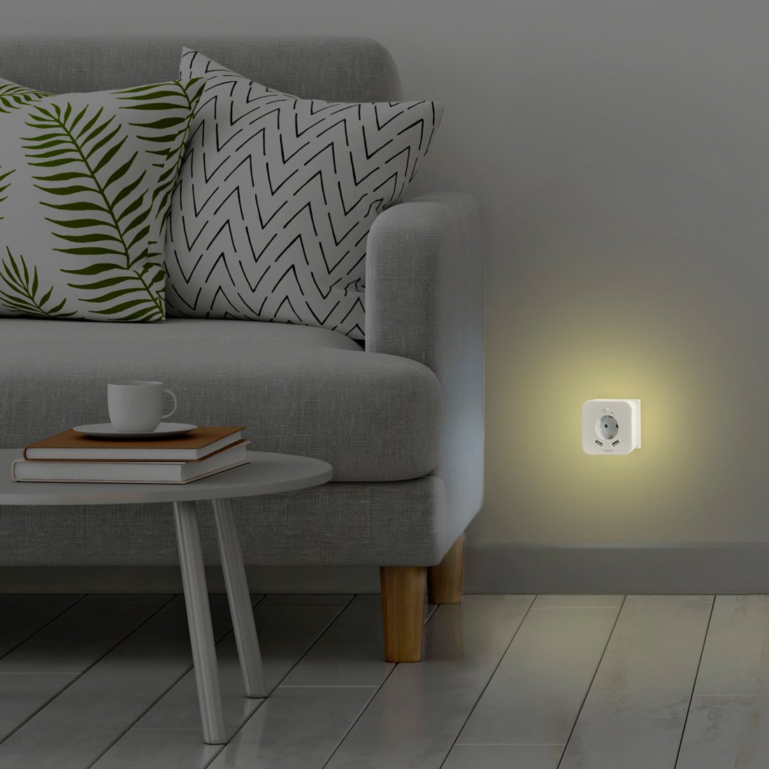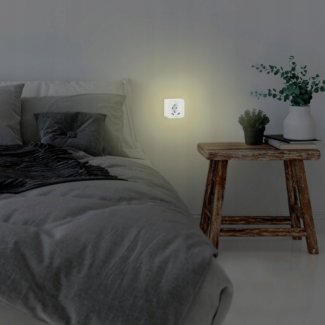 Светодиодный ночник с датчиком движения и сумерек автоматически реагирует на движение в темноте, включая деликатный ориентирующий свет. Через 30 секунд после окончания движения он автоматически отключается, что экономит электроэнергию и обеспечивает комфорт использования.