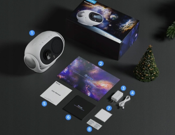 Используя улучшенную вращающуюся проекцию, галактический проектор каждую секунду отображает другое изображение, позволяя почувствовать себя дома в настоящем планетарии. Поверните кольцо масштабирования, чтобы получить более четкое изображение.