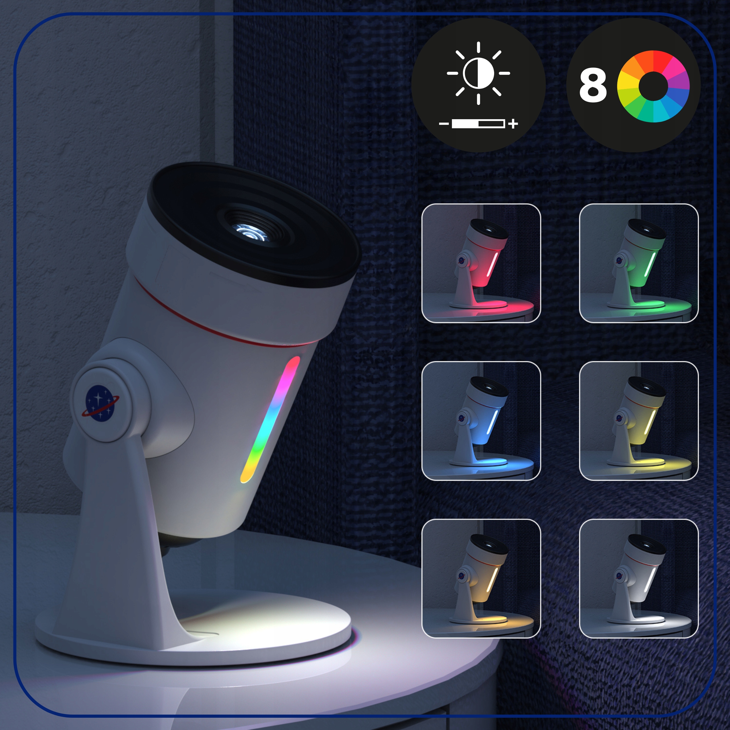Откройте для себя волшебство космоса у себя дома с помощью проектора Lunette Planetarium HD! Устройство сочетает в себе реалистичную проекцию звезд и планет, ночник с 8 цветами света и функцию автоматического отключения.