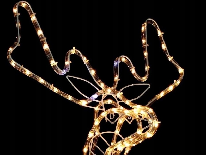 Олень оснащен 9-метровой светодиодной лентой с 216 энергосберегающими светодиодами холодного белого цвета. Благодаря этому украшение выглядит эффектно, особенно с наступлением темноты, напоминая снежную и морозную зиму.