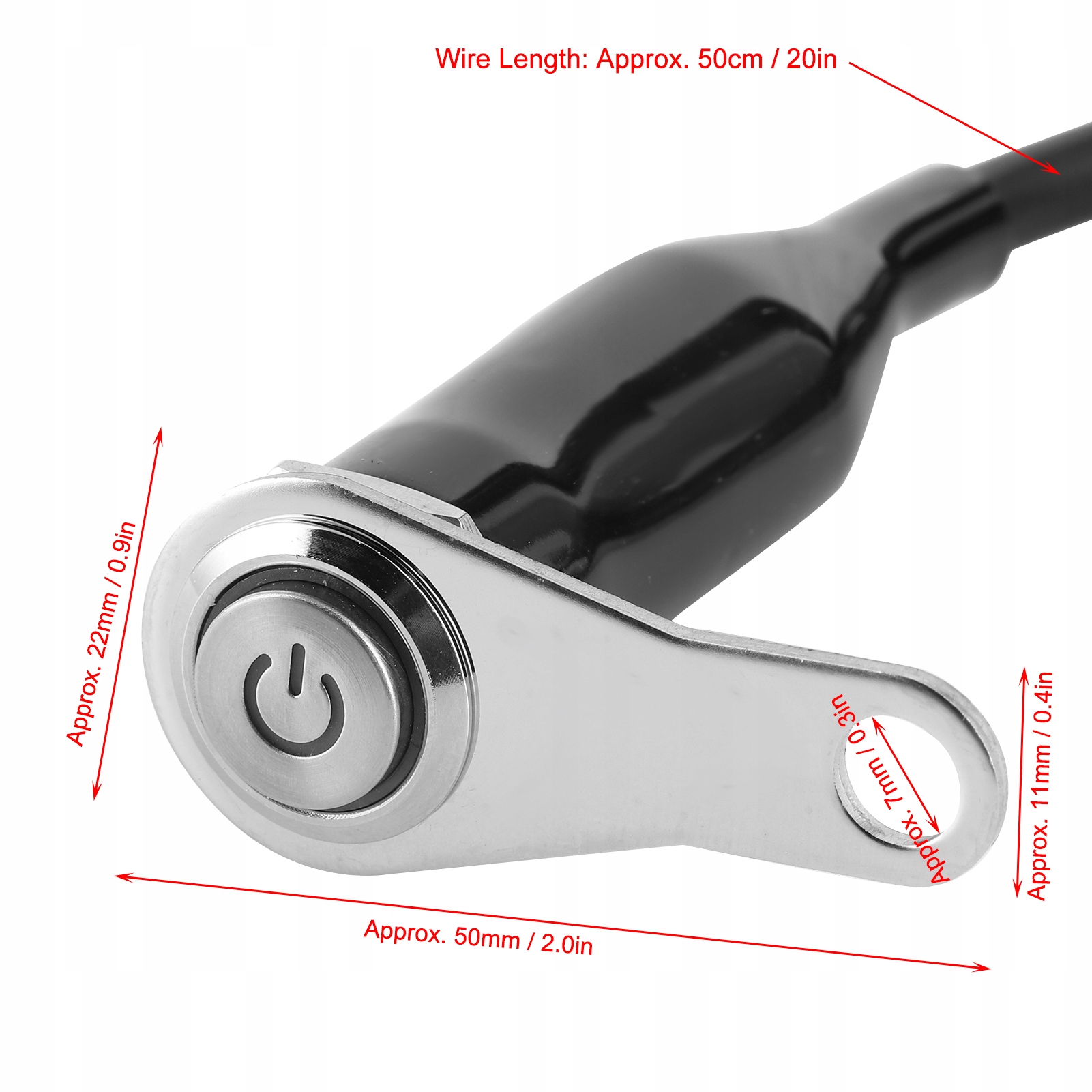 Длина автомобильного провода: ок. 50 см/20 дюймов