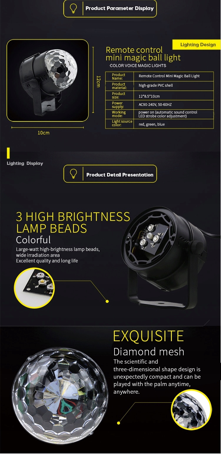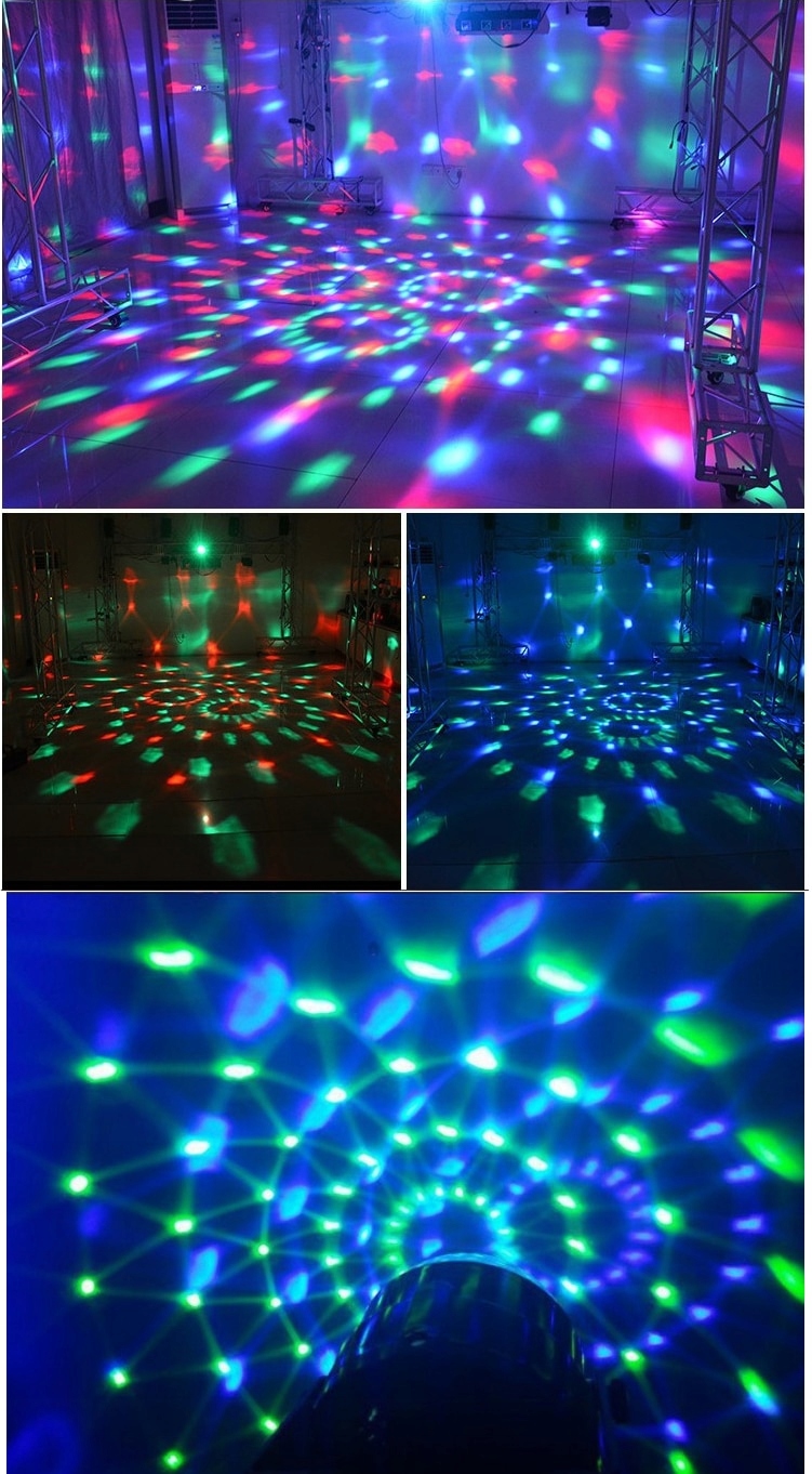 Трехноколорный диско -свет маленький и легко носить. Tri -Colosed Disco Light может осветить комнату 100 квадратных футов. Чем темнее окружение, тем лучше эффект освещения. Подходит для различных внутренних событий и является лучшим освещением для вечеринки