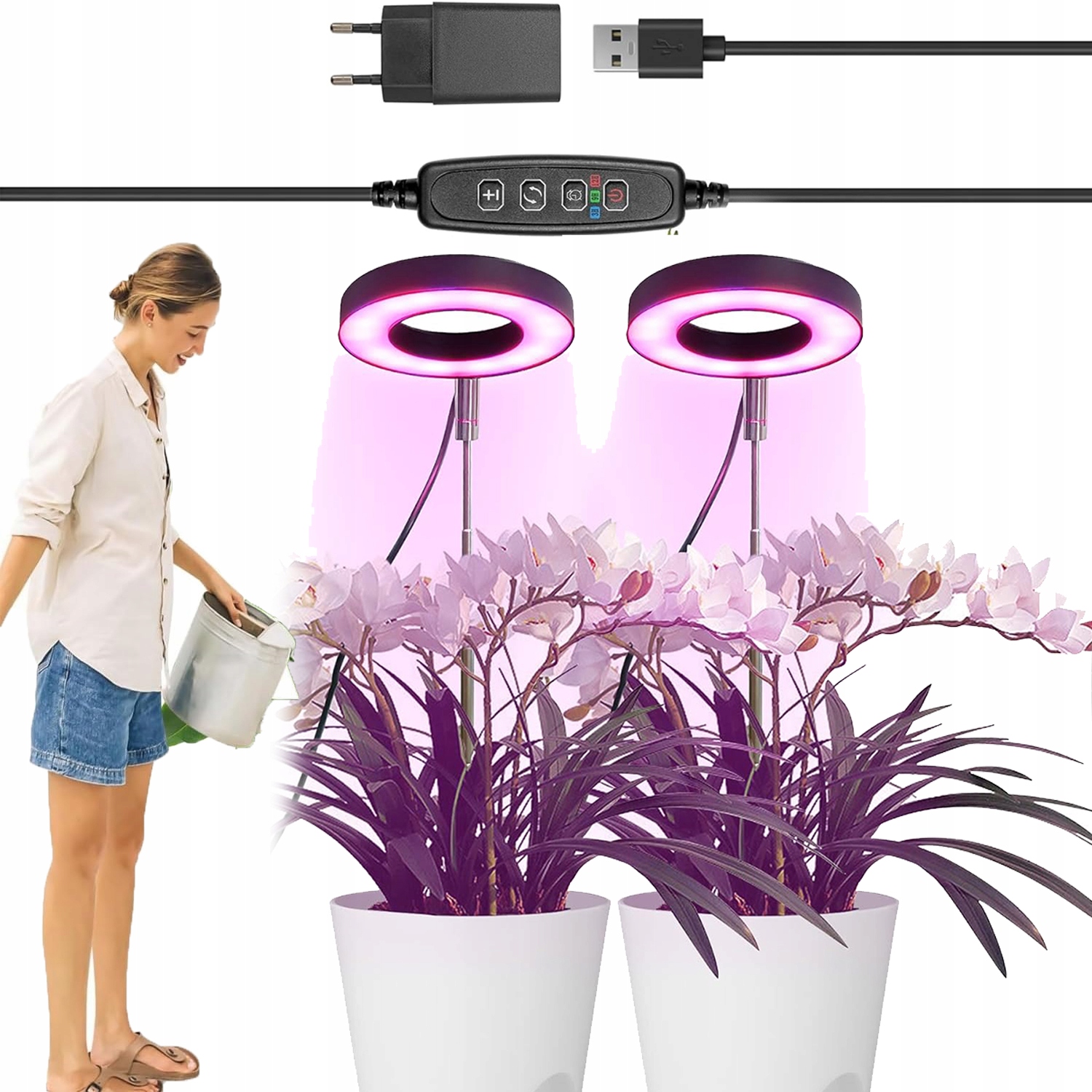 Светодиодная лампа для растений, 2-Głowicowa, 2 * 42 светодиодов для растений, полный световой спектр для выращивания растений с таймером 3/9/12 с USB-адаптером, 3 режимами освещения и 10 уровнями яркости (черный)