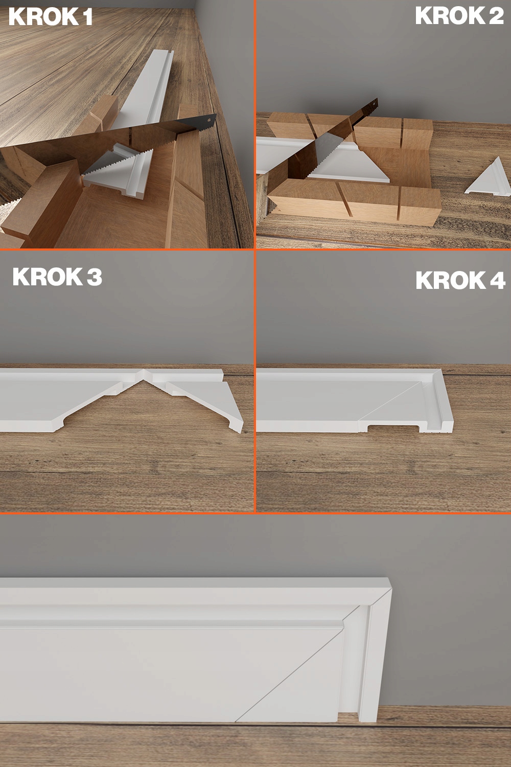 Прежде чем приступить к монтажу плинтуса, подготовьте поверхность, к которой он будет крепиться, желательно с помощью нашего специального клея для штукатурки Inspirum (чтобы найти его, просто вставьте аукционный номер в поисковик Allegro) 14201119357). Чтобы обеспечить чистоту, правильную адгезию и удовлетворительный эффект, удалите старое лакокрасочное покрытие, слой пыли и другие загрязнения. Убедитесь, что поверхность не содержит влаги и правильно загрунтована. Излишки клея можно удалить пальцем или пластиковым лезвием для удаления клея.