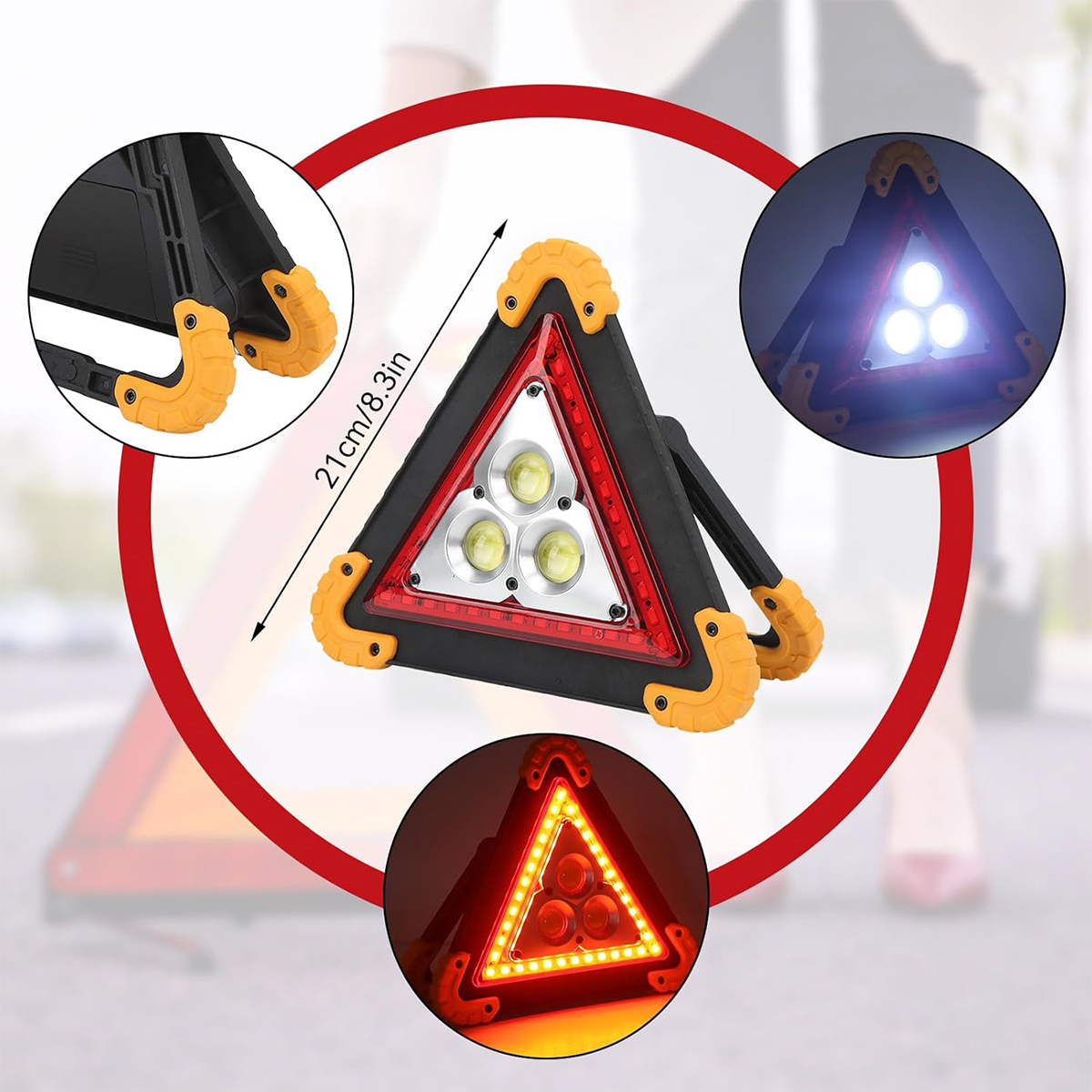 2. Треугольный мигающий светодиодный свет предупреждает других драйверов о вашем присутствии. Держите их на обочине дороги в чрезвычайной ситуации, чтобы вы могли немедленно остановиться.