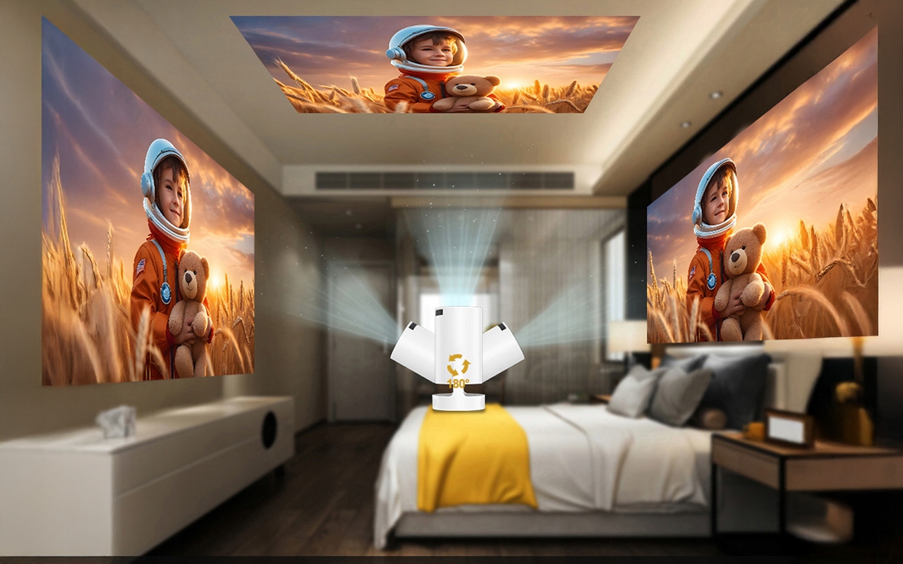 На столе, на стене или, может быть, с потолка? Проектор может быть повернут почти в каждом самолете - 180 ° Freedom дает вам полную свободу настройки, где бы вы ни захочется. Независимо от того, как вы его выразили - изображение всегда будет там, где вам нужно.