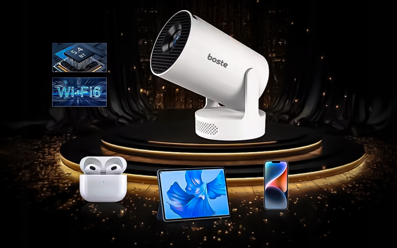 Boste Portable Projector Projector Android 11 WiFi6 BT5.4 HD 720p LED 110 ' h2>