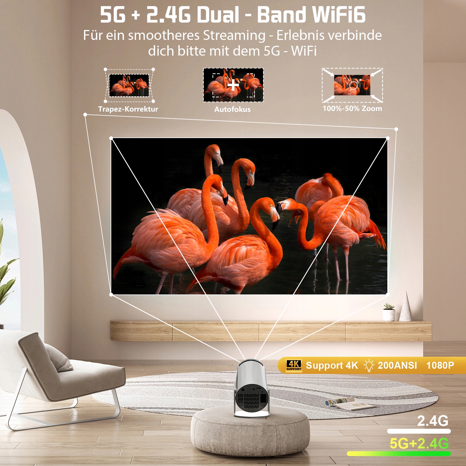 Воспользуйтесь новейшей интегрированной технологией Smart TV в своем частном кинотеатре с помощью Android 11.0, индивидуального высокопроизводительного, маломощного 4-ядерного чипа ARM Cortex-A53 и графического процессора G31. Проектор работает быстрее, более совместим и позволяет легко выполнять несколько задач в фоновом режиме.