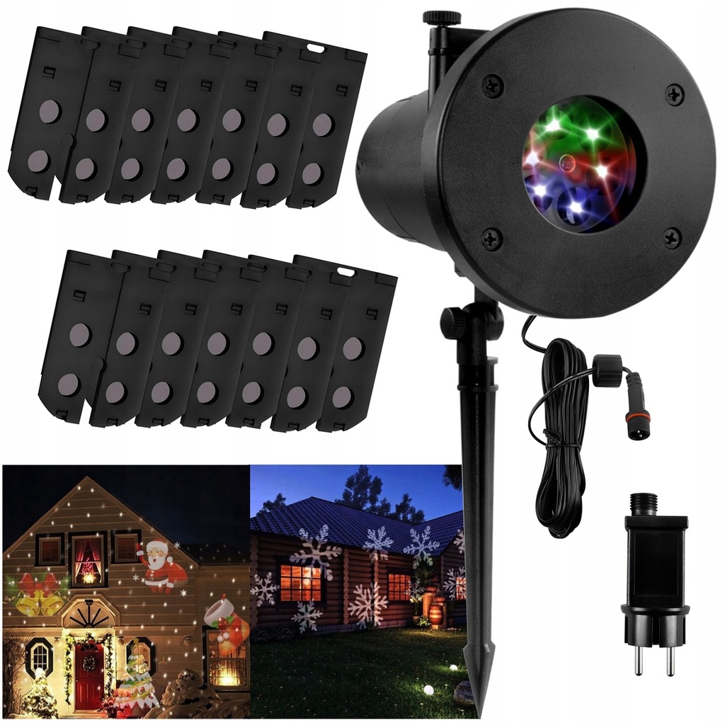 ВОДОНЕПРОНИЦАЕМЫЙ РОЖДЕСТВЕНСКИЙ СВЕТОДИОДНЫЙ ПРОЕКТОР - 12 ЦВЕТНЫХ ПЛЕНОК/УЗОРОВ + БЛОК ПИТАНИЯ