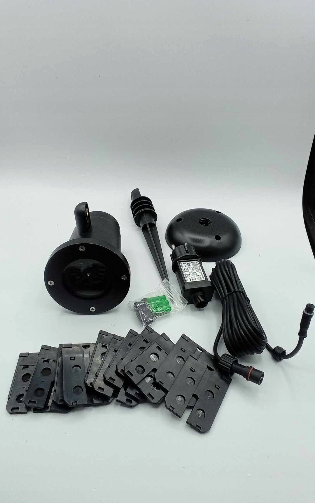 Проектор прочен и водонепроницаем. Блок питания защищен от влаги. Имеет возможность регулировки угла наклона и имеет два варианта крепления – на землю и непосредственно, например, на стену или забор (соответствующий держатель входит в комплект). В устройстве используется самая популярная светодиодная технология в отрасли, а мощность проекции лампы составляет 6 Вт. По сравнению со старыми технологиями безопасен для зрения.