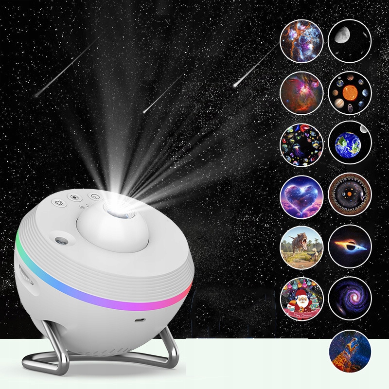- Осветите свое жизненное пространство благодаря нашему самому современному галактик -проектору с 13 гипнотизирующими сценами, такими как луна (встроенная -в), солнечная система, Земля, Черная дыра, молочный путь, туманность Ориона и колонны создания Динных Диноза, Марийн Жизнь, Рождественская дни.