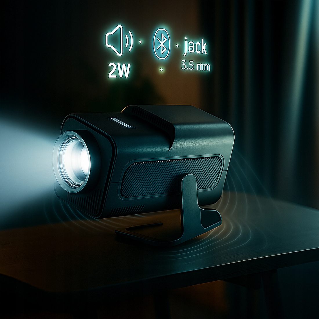 Проектор Hy320-NTV оснащен встроенным динамиком b>, который обеспечивает чистый звук, идеально подходящий для просмотра фильмов, сериалов или презентаций в маленьких комнатах.
