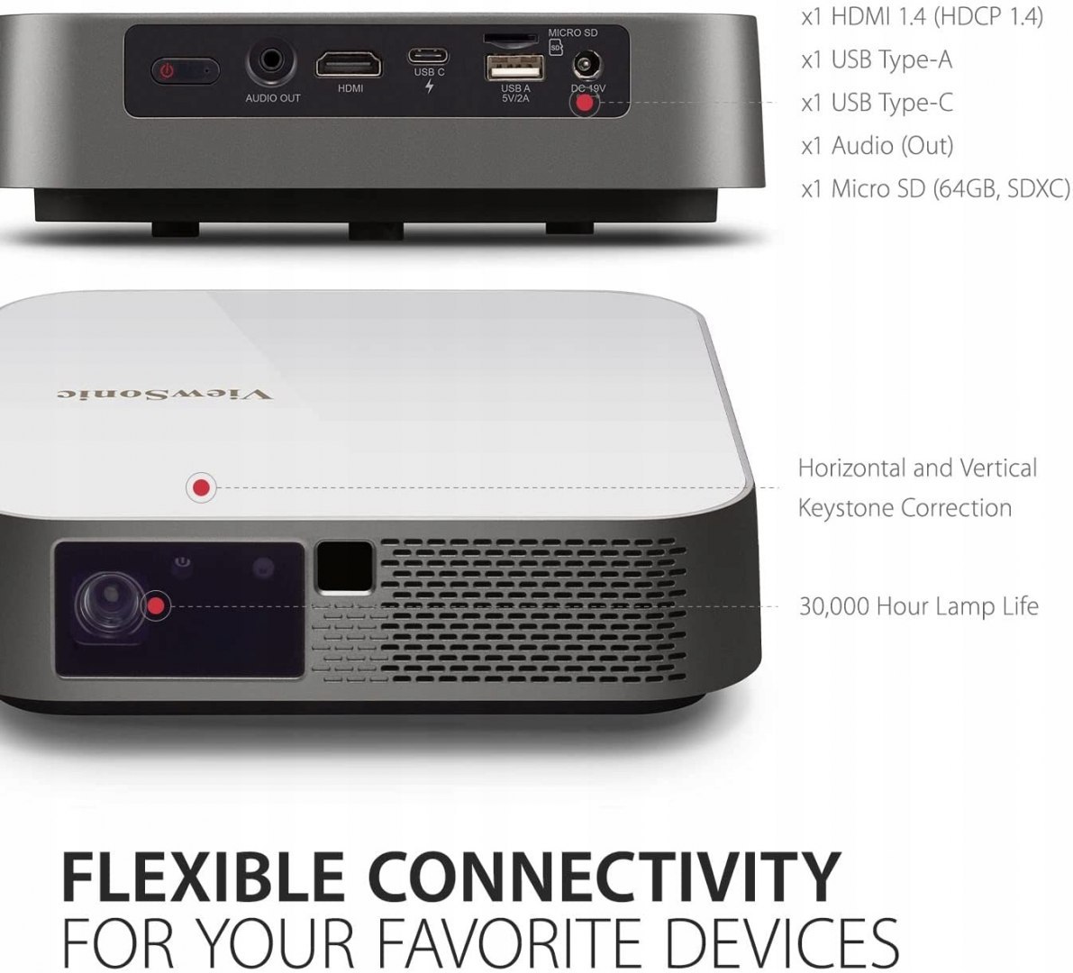 Беспроводное дублирование экрана позволяет пользователям передавать контент со своего портативного устройства на проектор. Встроенный слот для карт памяти microSD и порт USB-считывателя позволяют пользователю просматривать документы, видео и другой мультимедийный контент без необходимости подключения к компьютеру.