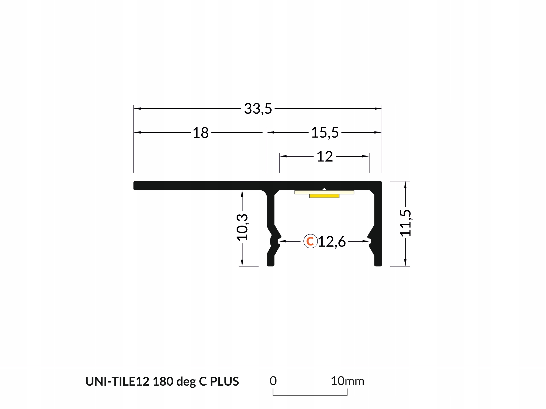 Светодиодный профиль UNI-TILE12 Профиль под пластиной 180° для светодиодной ленты TOPMET длиной 1 м