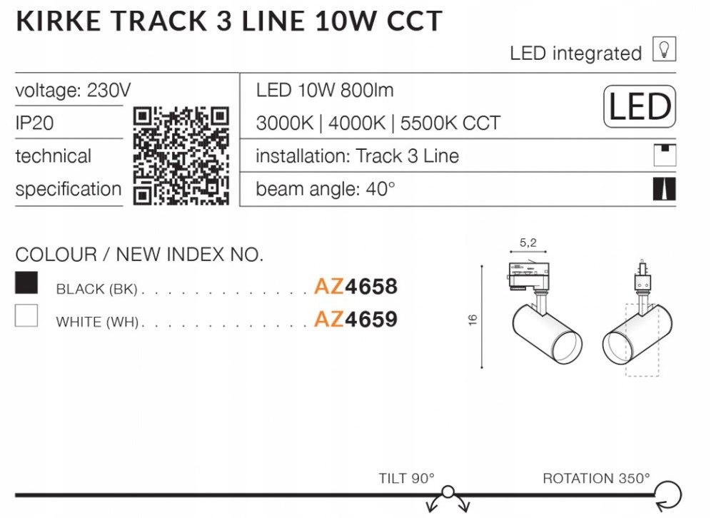 Світлодіодний прожектор KIRKE TRACK 1LINE CCT AZ4658 Azzardo
