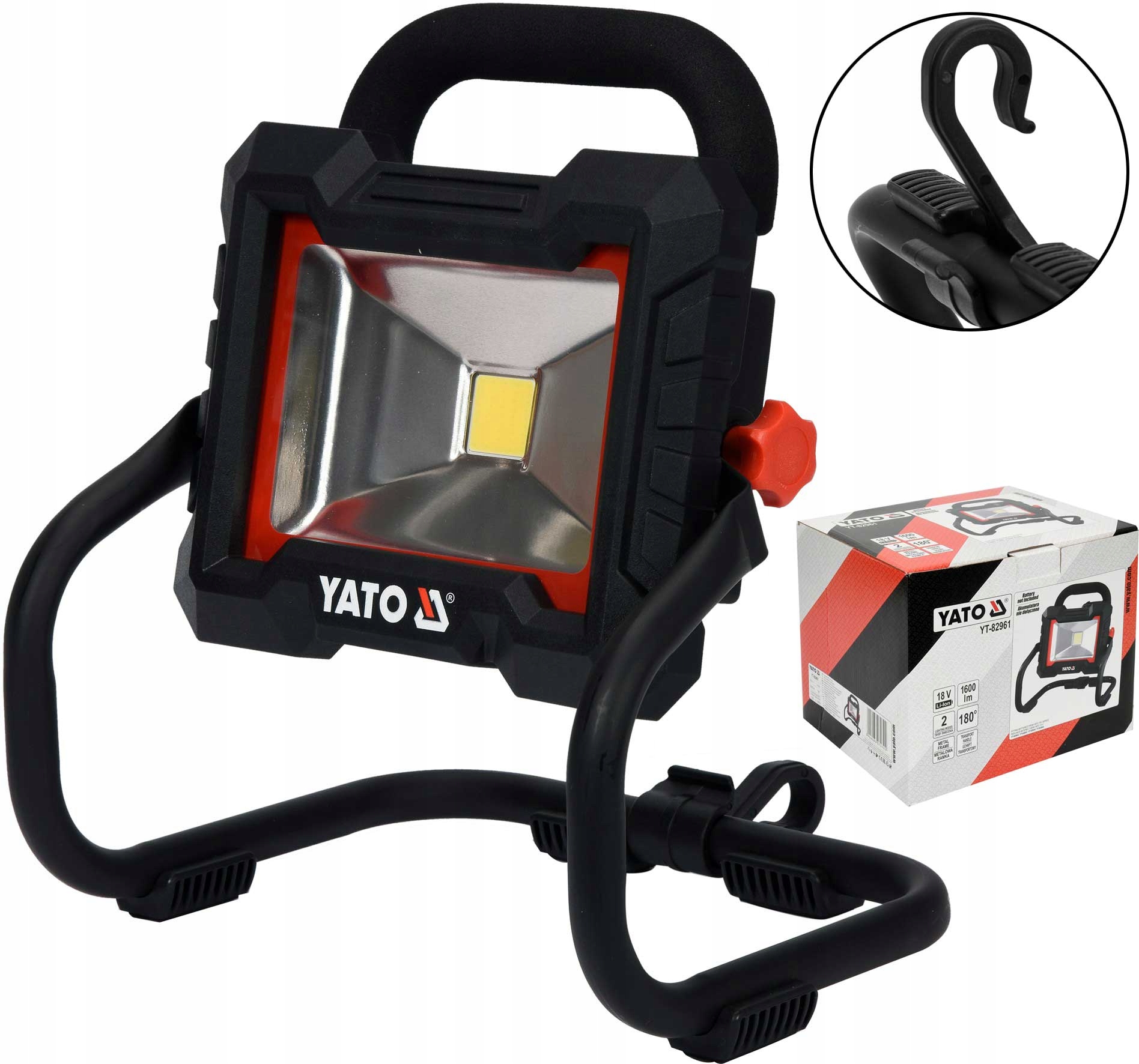 Портативный прожектор YATO с мощным светодиодным источником света мощностью 20 Вт и яркостью 1600 лм.