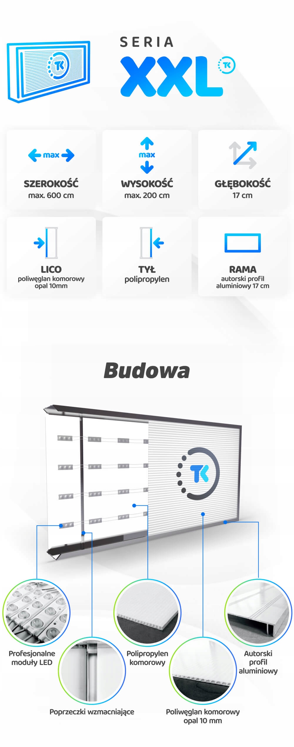 Односторонние световые короба XXL представляют собой группу световых коробов БОЛЬШОГО РАЗМЕРА. Каркас кассеты представляет собой прочный и прочный алюминиевый профиль. Лицевая/лицевая часть кассеты изготовлена из многокамерного поликарбоната Opal – материала, используемого в строительстве: для кровли спортивных сооружений, зимних садов, устройства навесов, козырьков, мансардных окон, а также в качестве заполнения при установке окон, двери и т.д. Благодаря высокой прочности, жесткости, пропорционально небольшому весу и большому формату табло 600 х 210 см применяется в рекламе – преимущественно при строительстве световых коробов с подсветкой. Техническое разрешение Строительного НИИ № АТ-15-3169/2008.