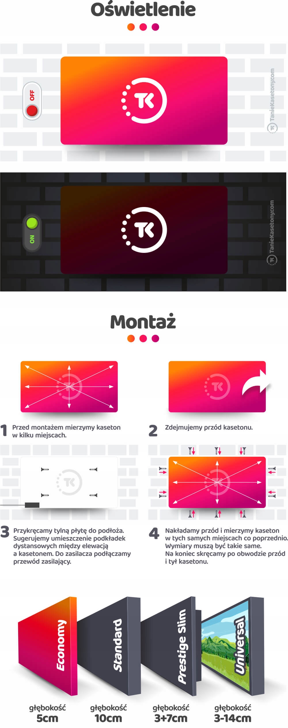 Световые короба Dibond серии ECONOMY были разработаны нами для клиентов, которые хотят получить качественный товар по низкой цене. Светодиодные модули, служащие освещением, размещены по более длинным краям, благодаря чему толщина кессона составляет всего 5 см. Максимальные размеры — 290x50 см.