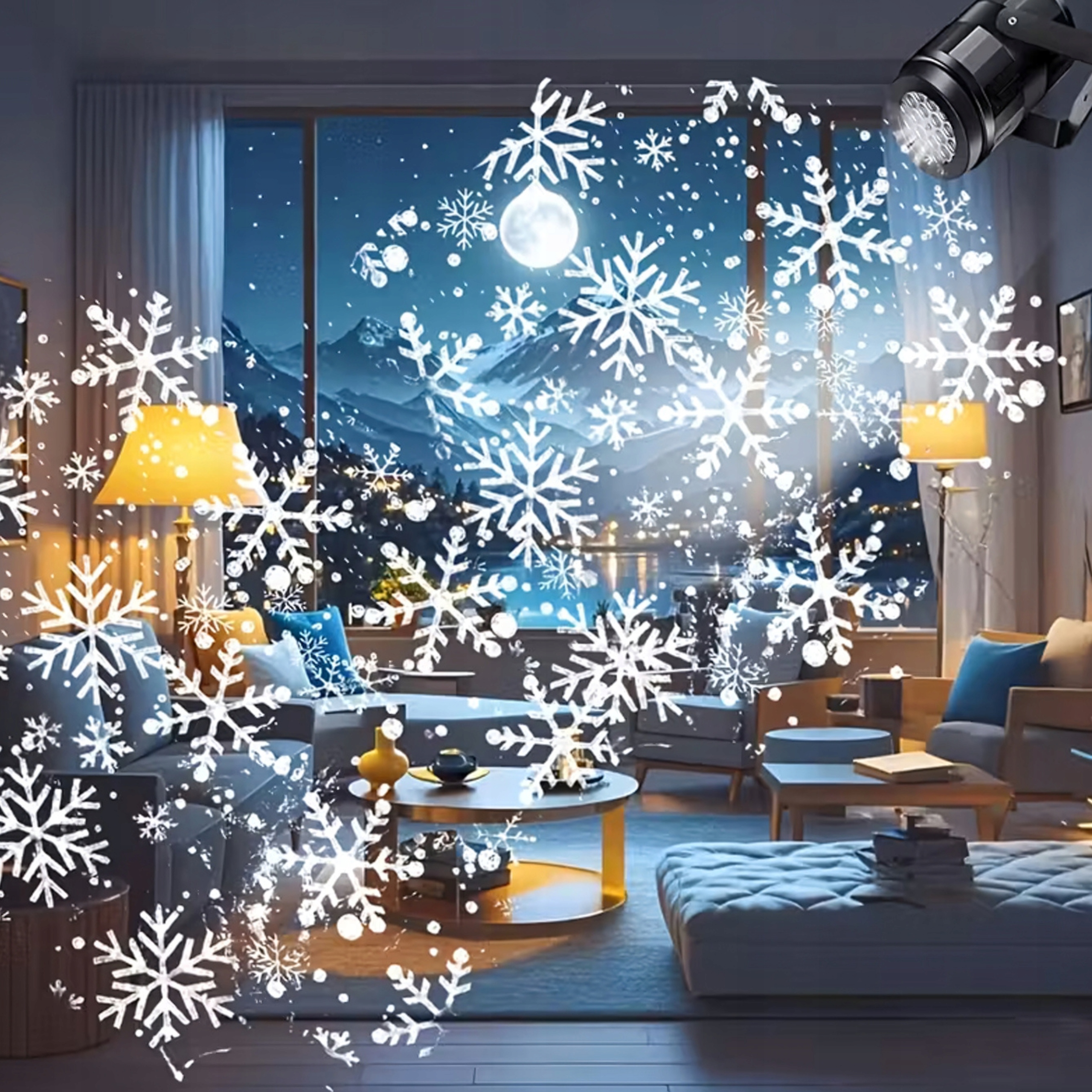 ✅ Устройство отображает белые, мягко кружащиеся снежинки, которые красиво смотрятся как на фасаде здания, так и внутри помещений - например в гостиной, детской комнате или на стене во время праздничных посиделок.