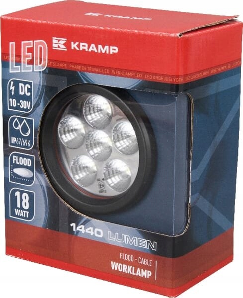 Фонарь рабочий светодиодный, круглый, 18Вт 1440 лм 10/30В рассеянный свет 6 светодиодов Kramp