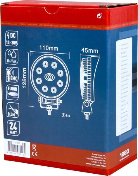 Фонарь рабочий светодиодный, круглый, 24Вт 1920 лм 10/30В рассеянный свет 8 светодиодов Kramp