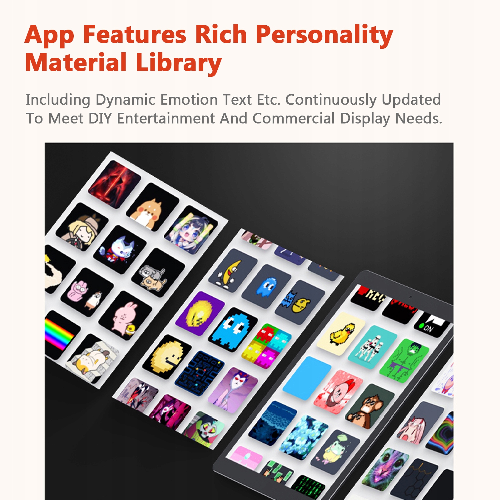 2. Светодиодный экран: управление приложениями, включая динамический текст эмоций и т. Д. Постоянно обновляется для удовлетворения потребностей в развлечениях и коммерческих дисплеях.