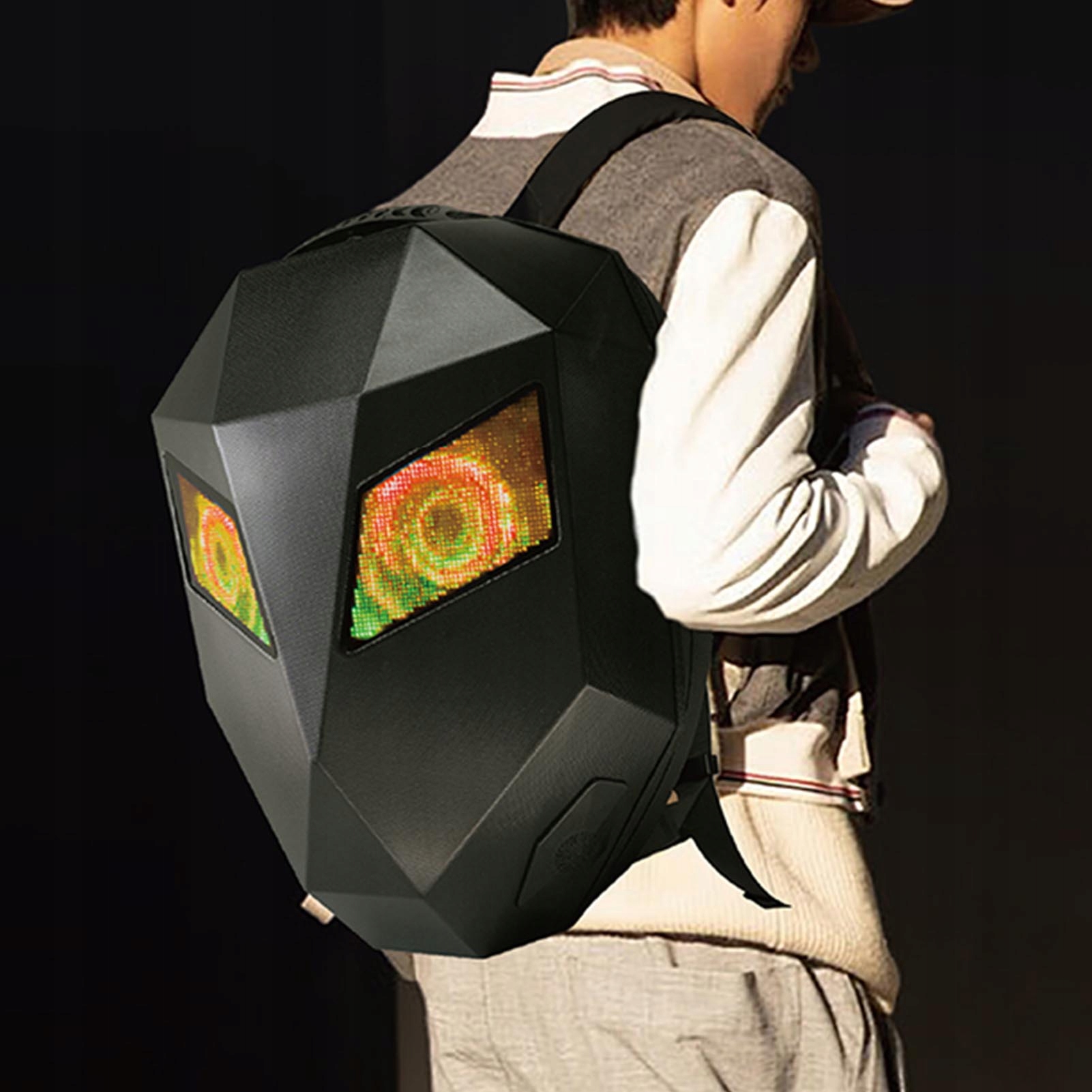 6. Экран и USB Powered: оснащен полный точечный цвет 48x48, мотоциклетный рюкзак поддерживает различные форматы дисплея, включая текст, изображение и GIF. Он оснащен интерфейсом USB, удобным и практичным